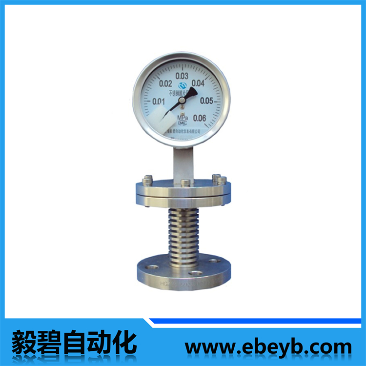 膜片壓力表主要用于石油化工、制堿、化纖、染化、制藥、食品和制酷等工業(yè)部門生產(chǎn)過程中測(cè)量流體介質(zhì)壓力之用。